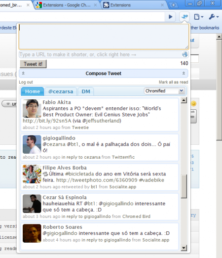 Para mi unos de los mejores clientes de twitter de Google Chrome, es muy rápido, personalizable y ofrece integración con múltiples acortadores de URL. Imprescindible.