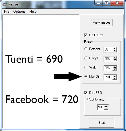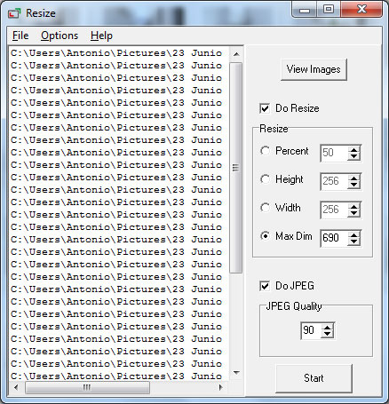 El único apartado que veremos será Max Dim en el cual tenemos que establecer el tamaño máximo que tendrán las nuevas fotografías dependiendo a la red social que vallas a utilizar deberás especificar un tamaño u otro: